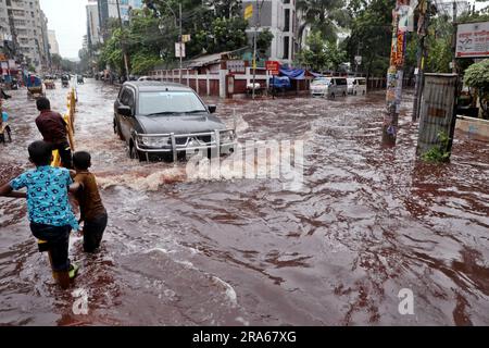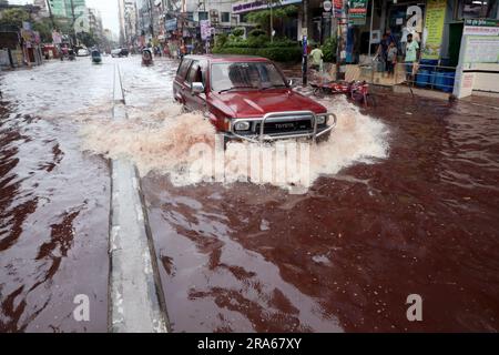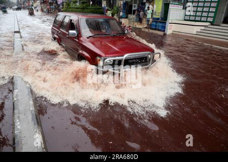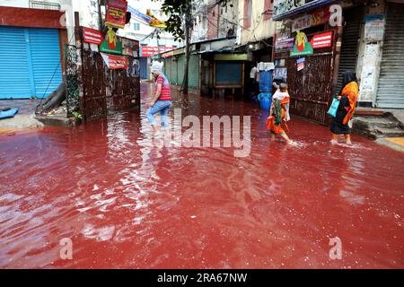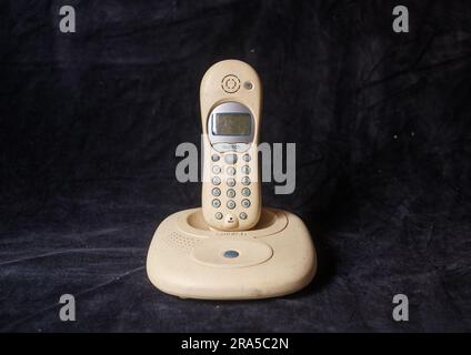 Dhaka, Bangladesch - Juni 29,2023: OKI-Telefon aus altem Elfenbein isoliert auf schwarzem Hintergrund