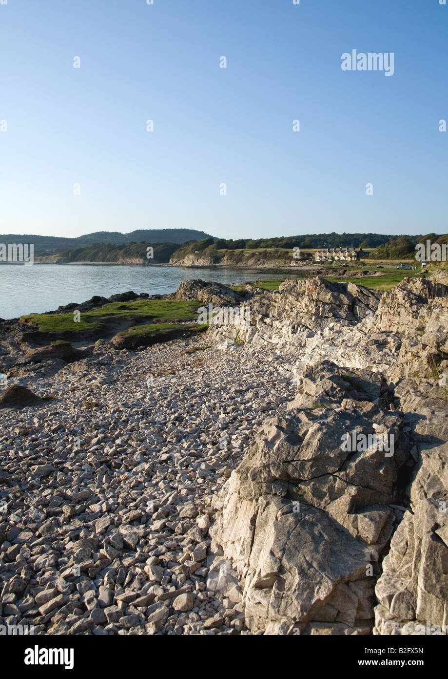Die felsige Küste und ruhigem Meer von Morecambe Bay in Silverdale, Carnforth, Lancashire, England an einem Sommerabend im Juli. Stockfotohttps://www.alamy.de/image-license-details/?v=1https://www.alamy.de/stockfoto-die-felsige-kuste-und-ruhigem-meer-von-morecambe-bay-in-silverdale-carnforth-lancashire-england-an-einem-sommerabend-im-juli-18789505.html