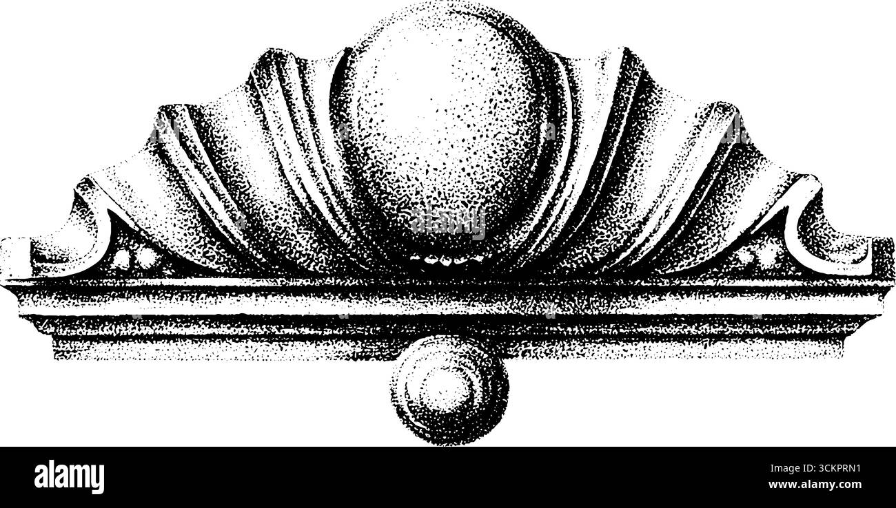 RF3B4FPH7–Aufwändige gravierte Illustration des antiken architektonischen Schlusssteins und der Säule.