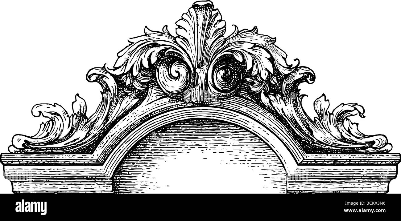RF3CKWD0Y–Klassischer Bogenfußstein im Vintage-Gravurstil für architektonisches Design.
