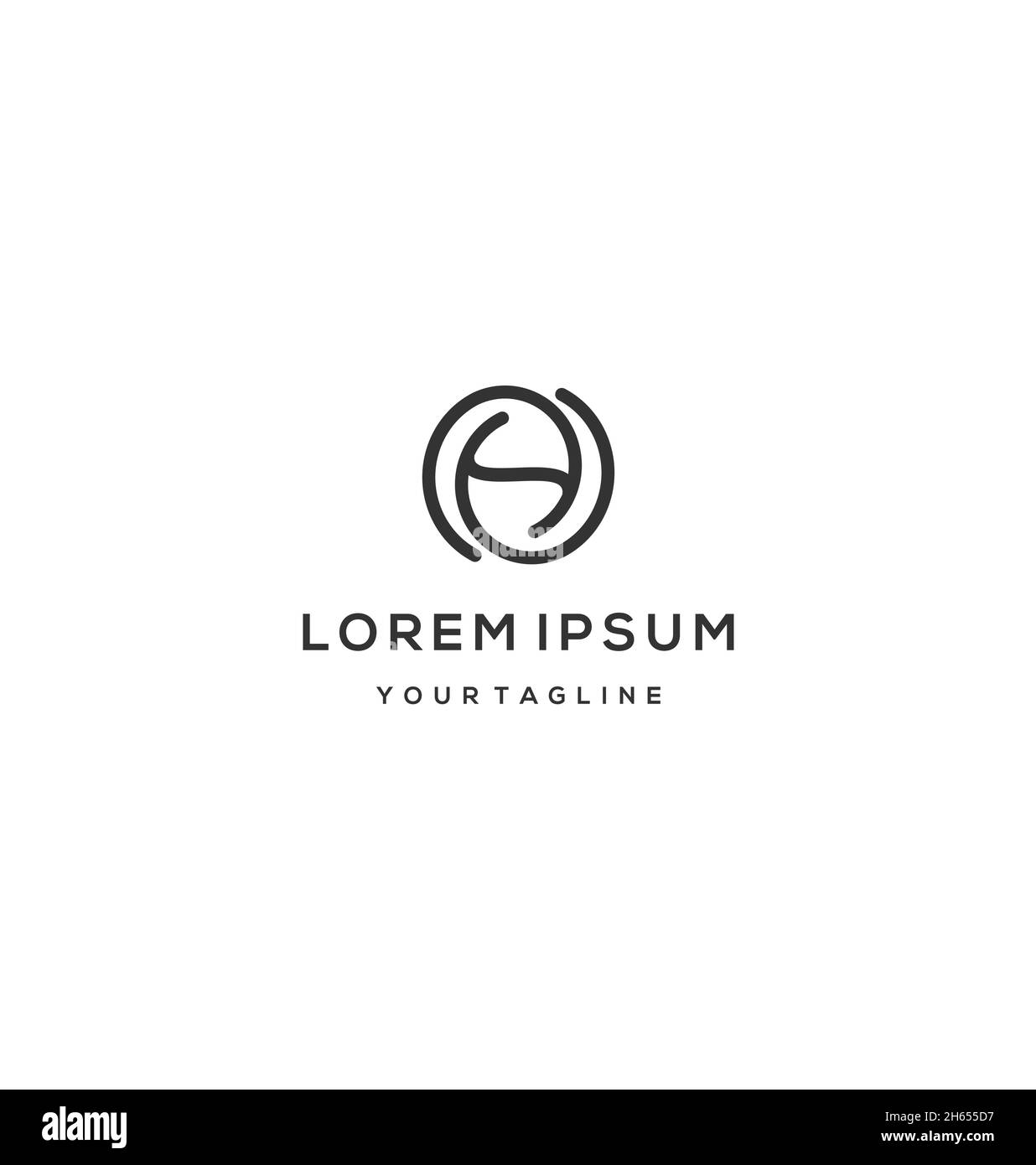 RF3BMYAKF–Ein Vektorlogo mit einem abstrakten Bild, einem Kreis mit einem horizontalen Balken innen, der den Buchstaben H in einem minimalistischen Stil bildet.