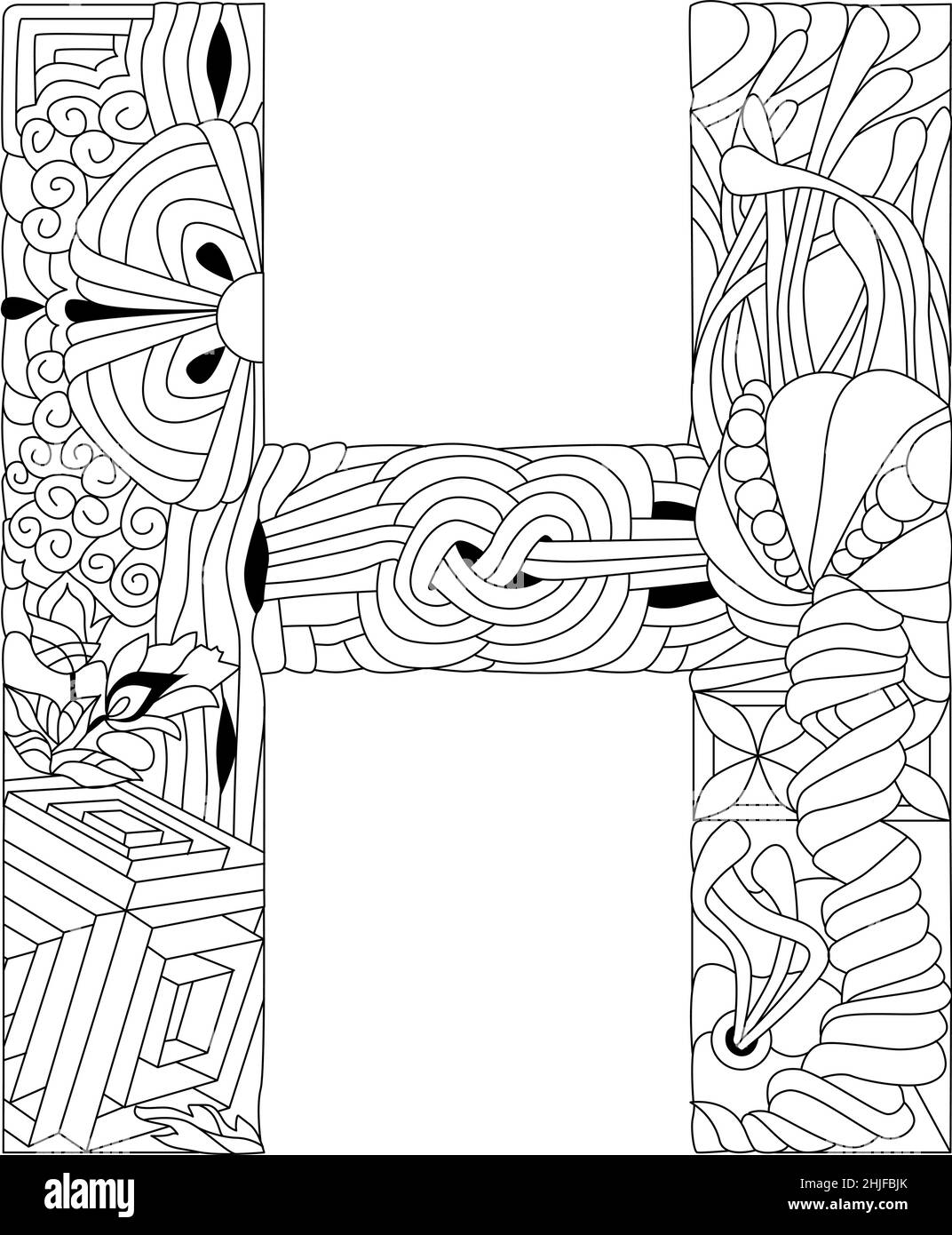 Zentangle stilisiertes Alphabet - Buchstabe H für die Färbung. Vektorgrafik. Ethnisches Muster Stock Vektorhttps://www.alamy.de/image-license-details/?v=1https://www.alamy.de/zentangle-stilisiertes-alphabet-buchstabe-h-fur-die-farbung-vektorgrafik-ethnisches-muster-image458871803.html