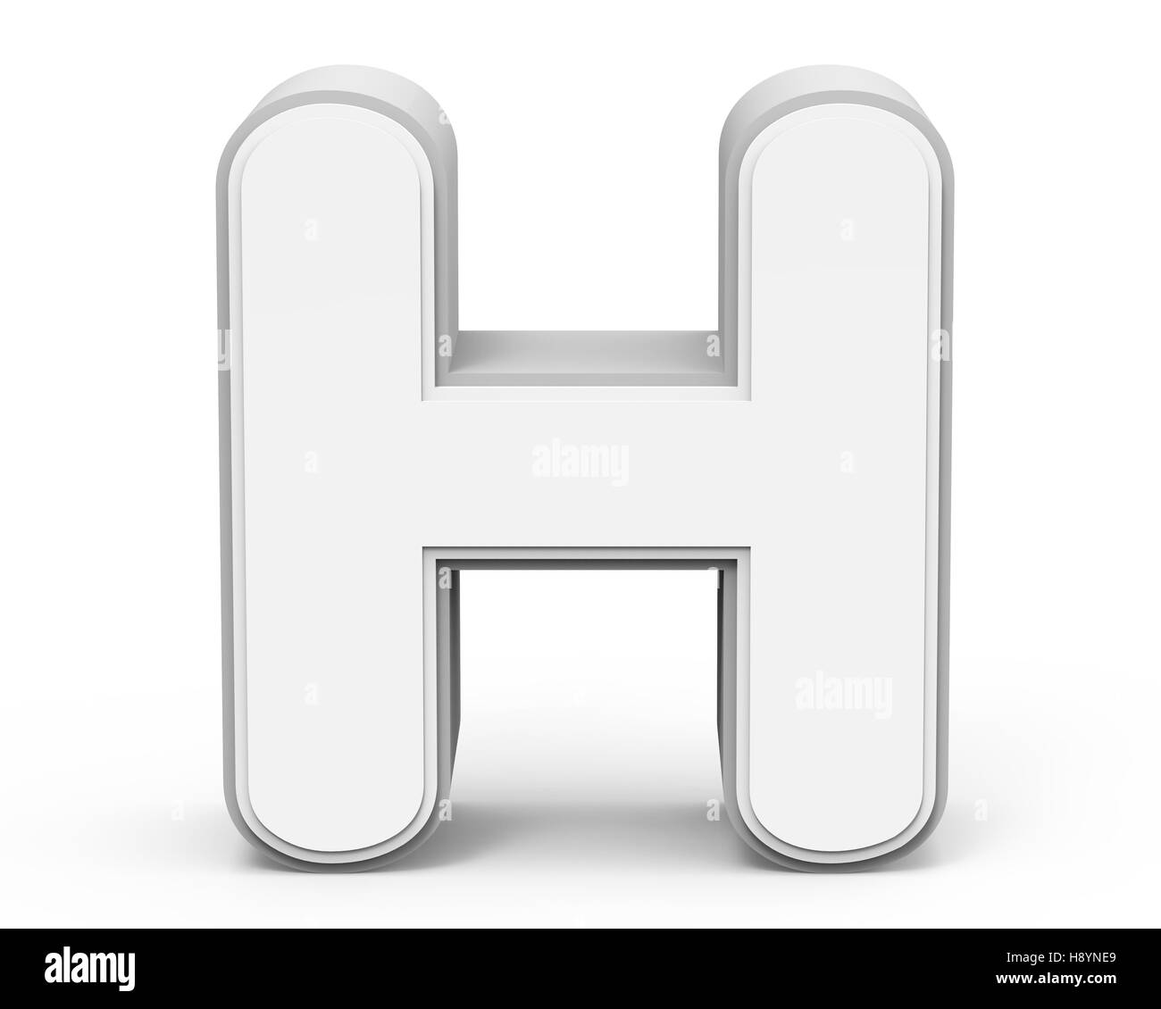 RFH8YNR1–weiße Buchstaben H, 3D-Rendering Grafik isoliert auf weißem Hintergrund