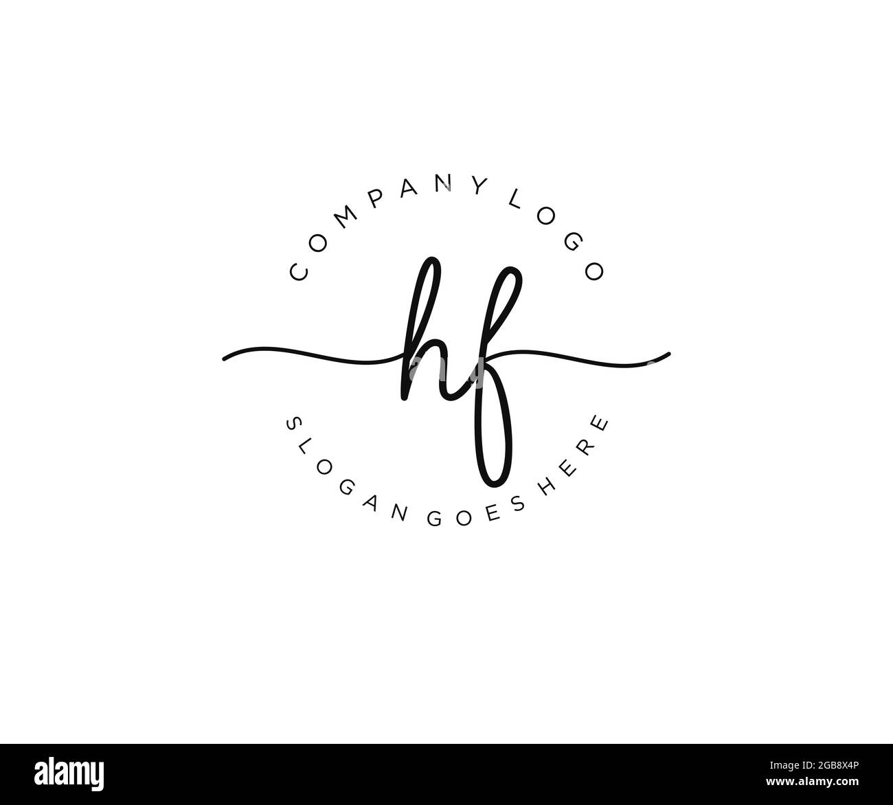 RF2HJKGJ0–Anfangsbuchstabe HF-Logo - handgezeichnetes Signaturlogo - einfaches Vektorlogo im Signaturstil für Initialen