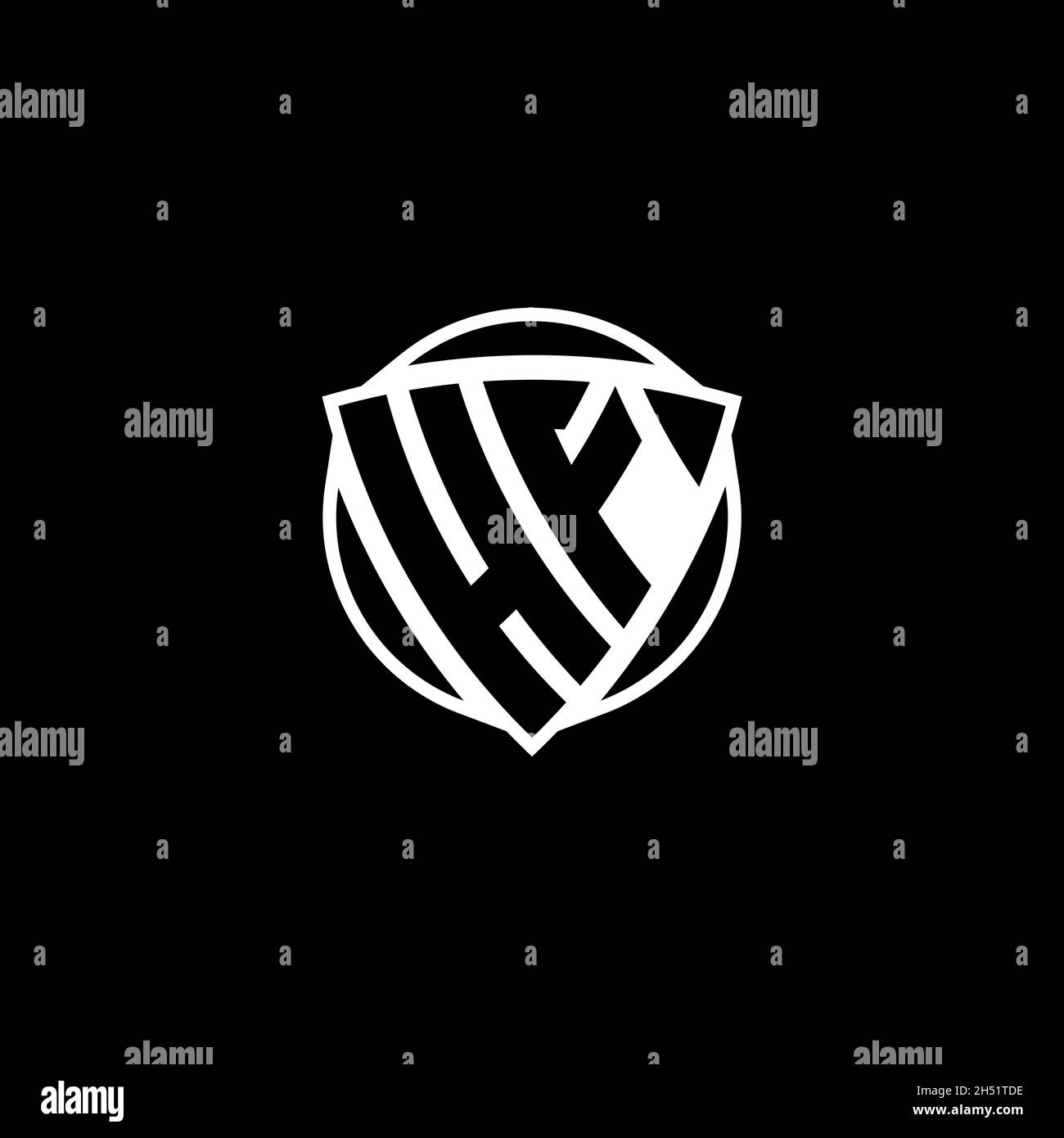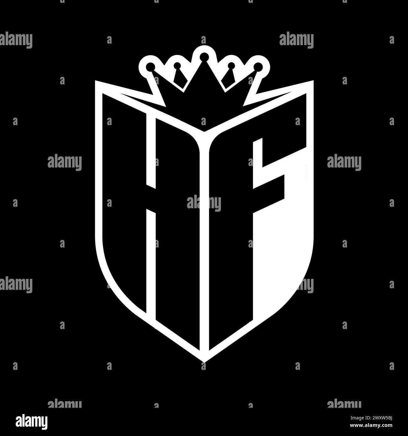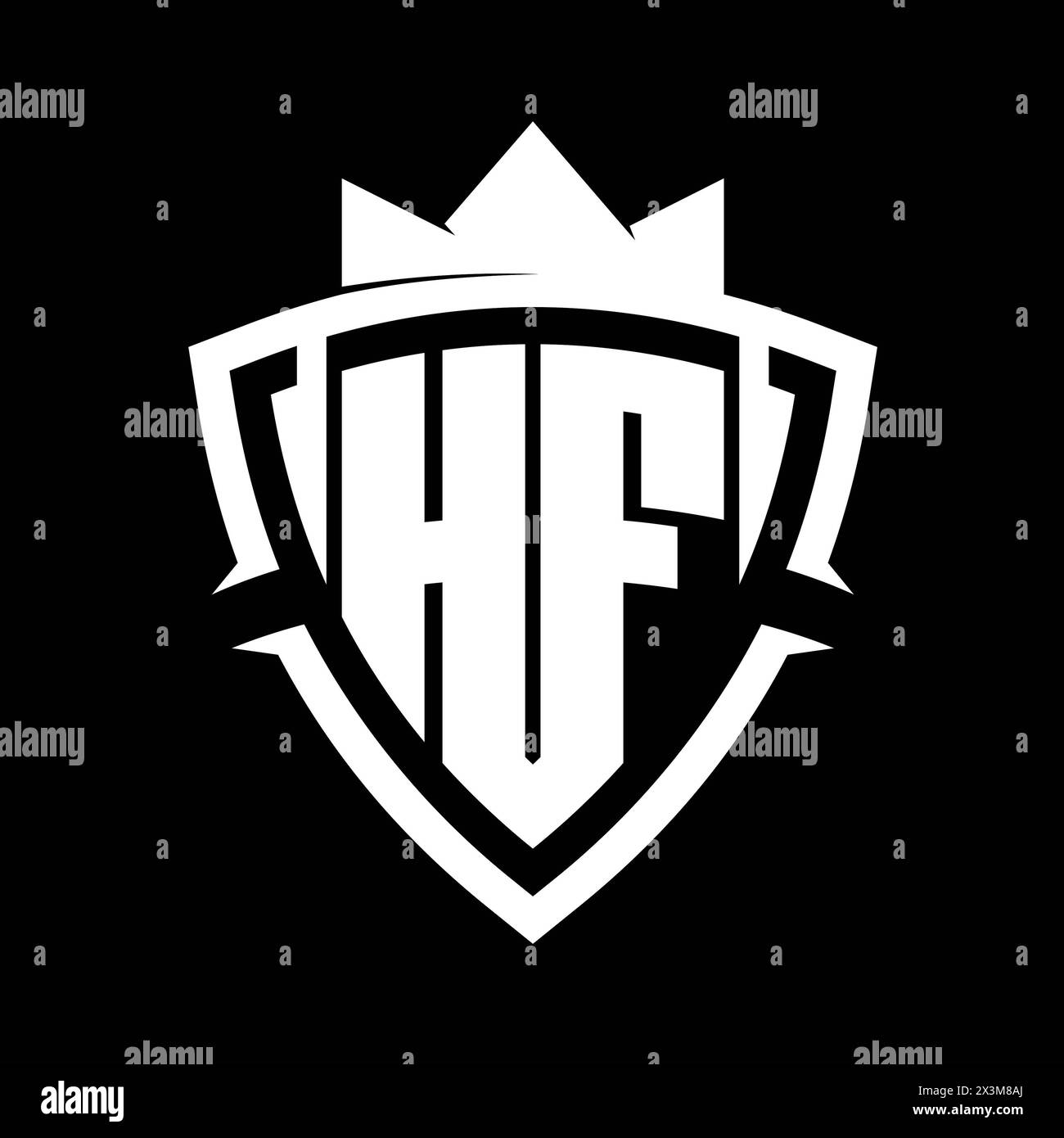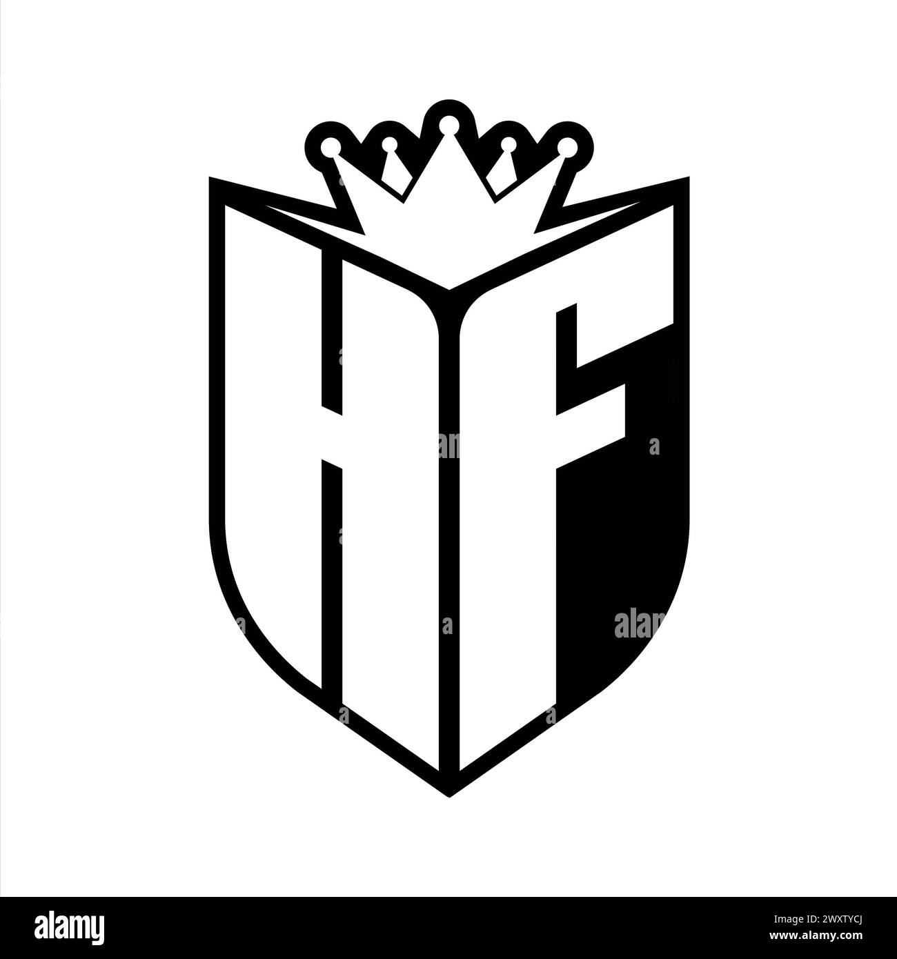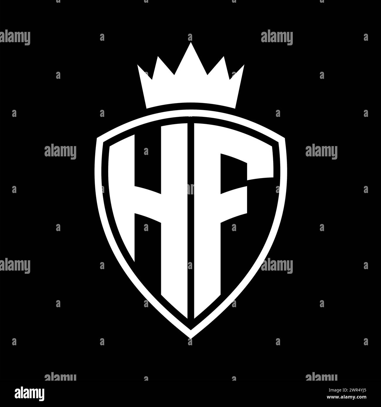 RF2WR4YJ5–HF Letter in kräftigem Monogramm mit Schild- und Kronenumrissform mit schwarz-weißer Farbvorlage