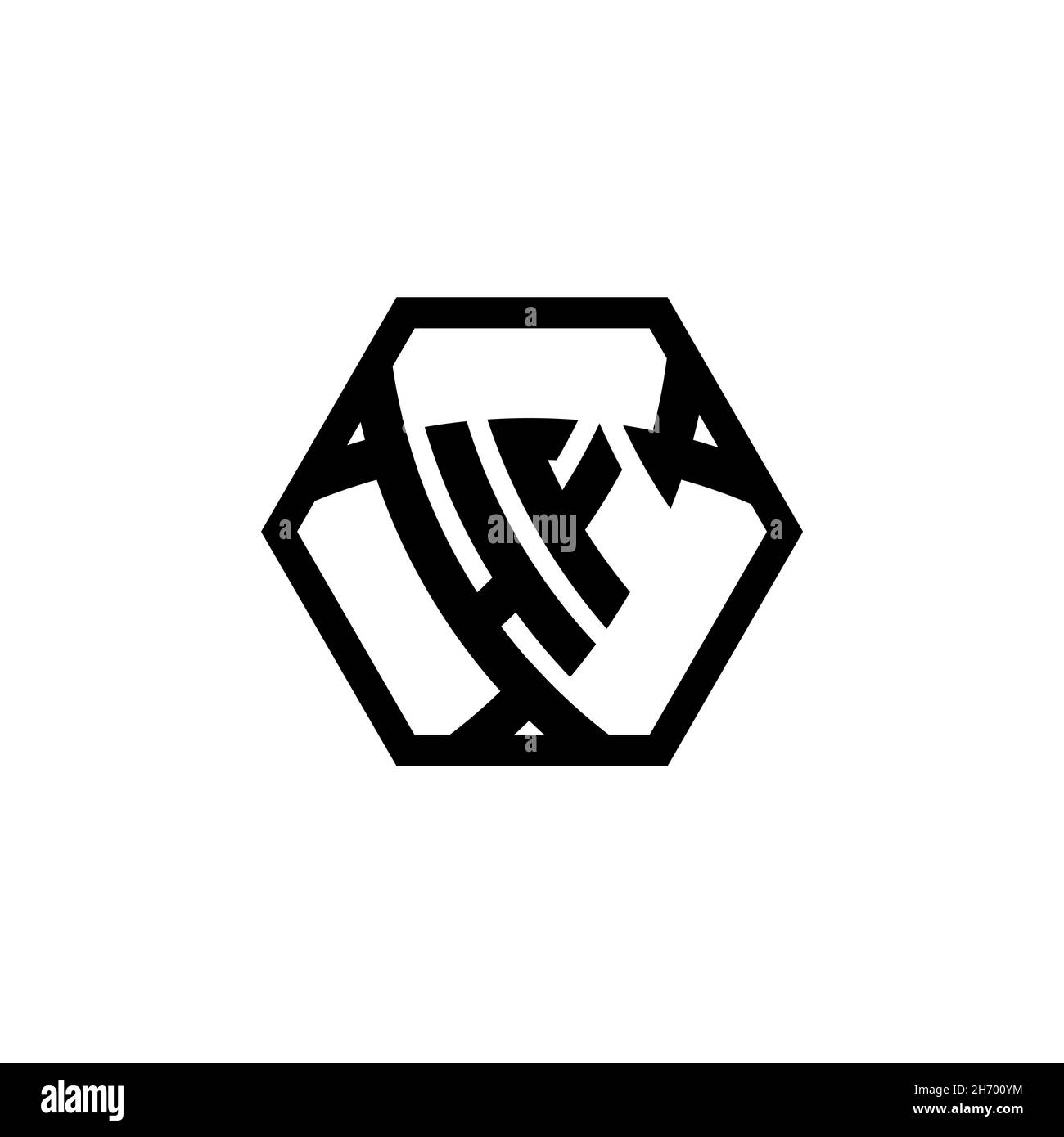 RF2H97WPP–HF Monogram Logo Buchstabe mit Dreieck Play Button Form sechseckig abgerundet. Dreieck Kreis Monogramm Logo, Dreieck Schild Logo Buchstabe.