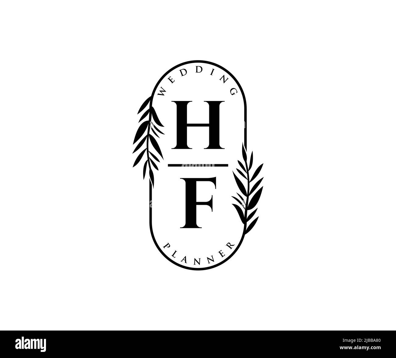 RF2K1WDFR–HF Initialen Brief Hochzeit Monogramm Logos Vorlage, handgezeichnete moderne minimalistische und florale Vorlagen für Einladungskarten, Save the Date, elegant