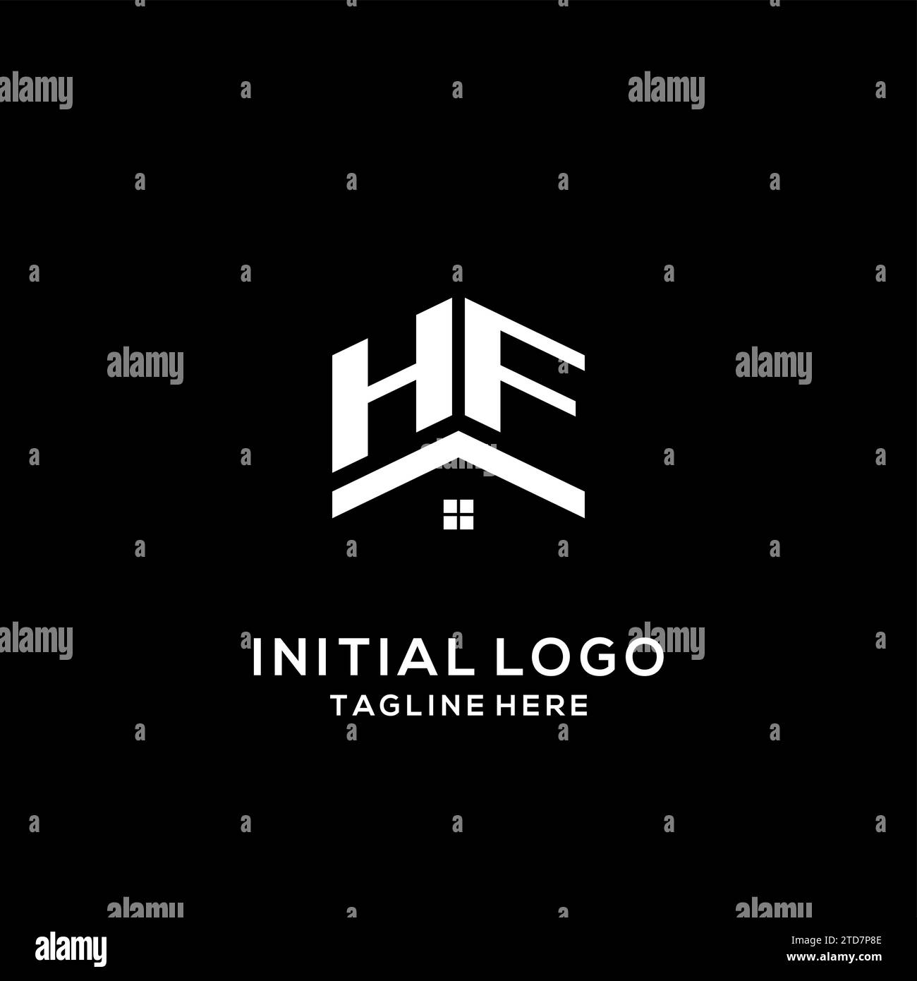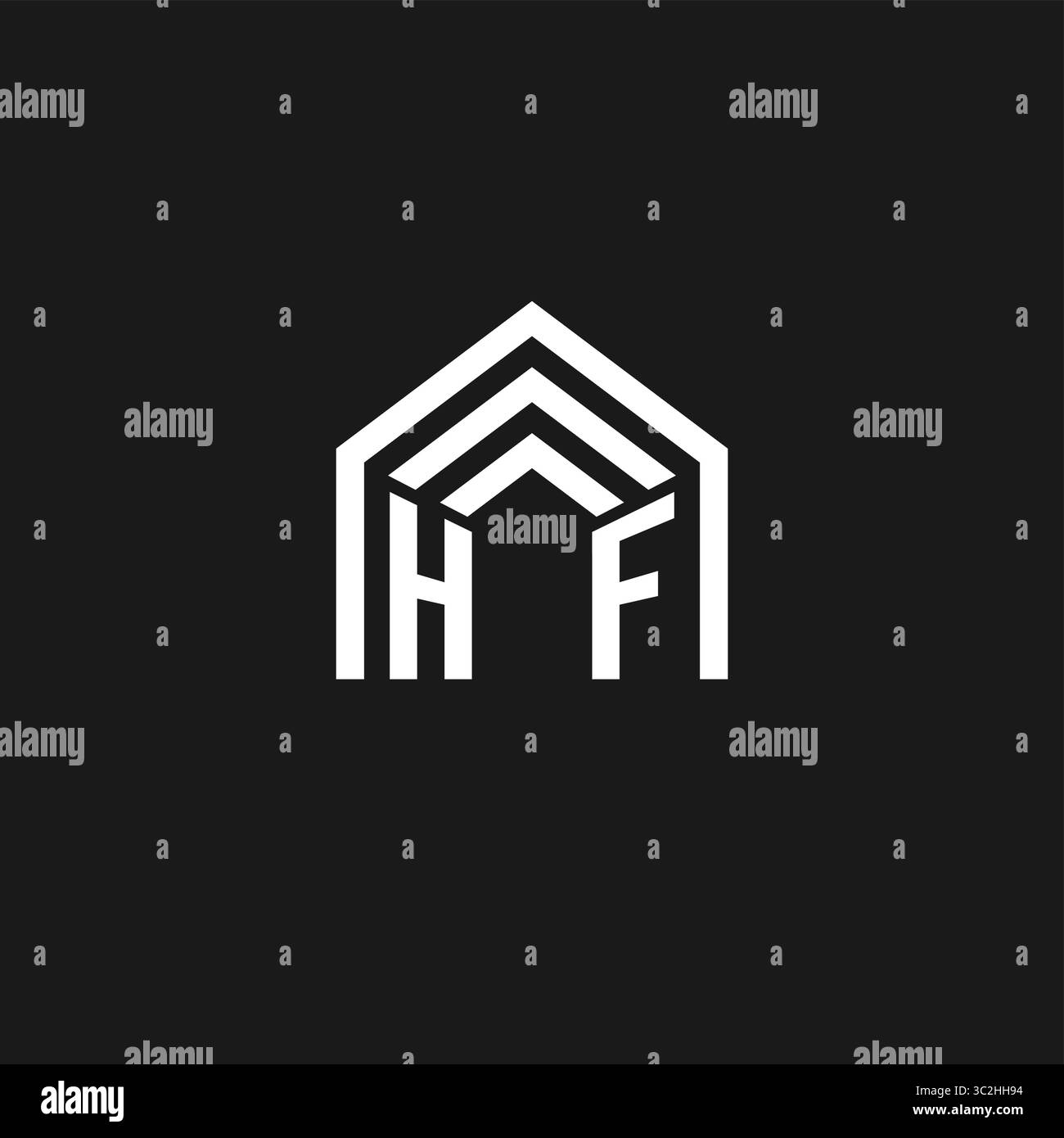 RF3C2HH94–Buchstabe HF Haus Dachform Logo kreative Immobilien Monogramm Logo Stil Vektorgrafik