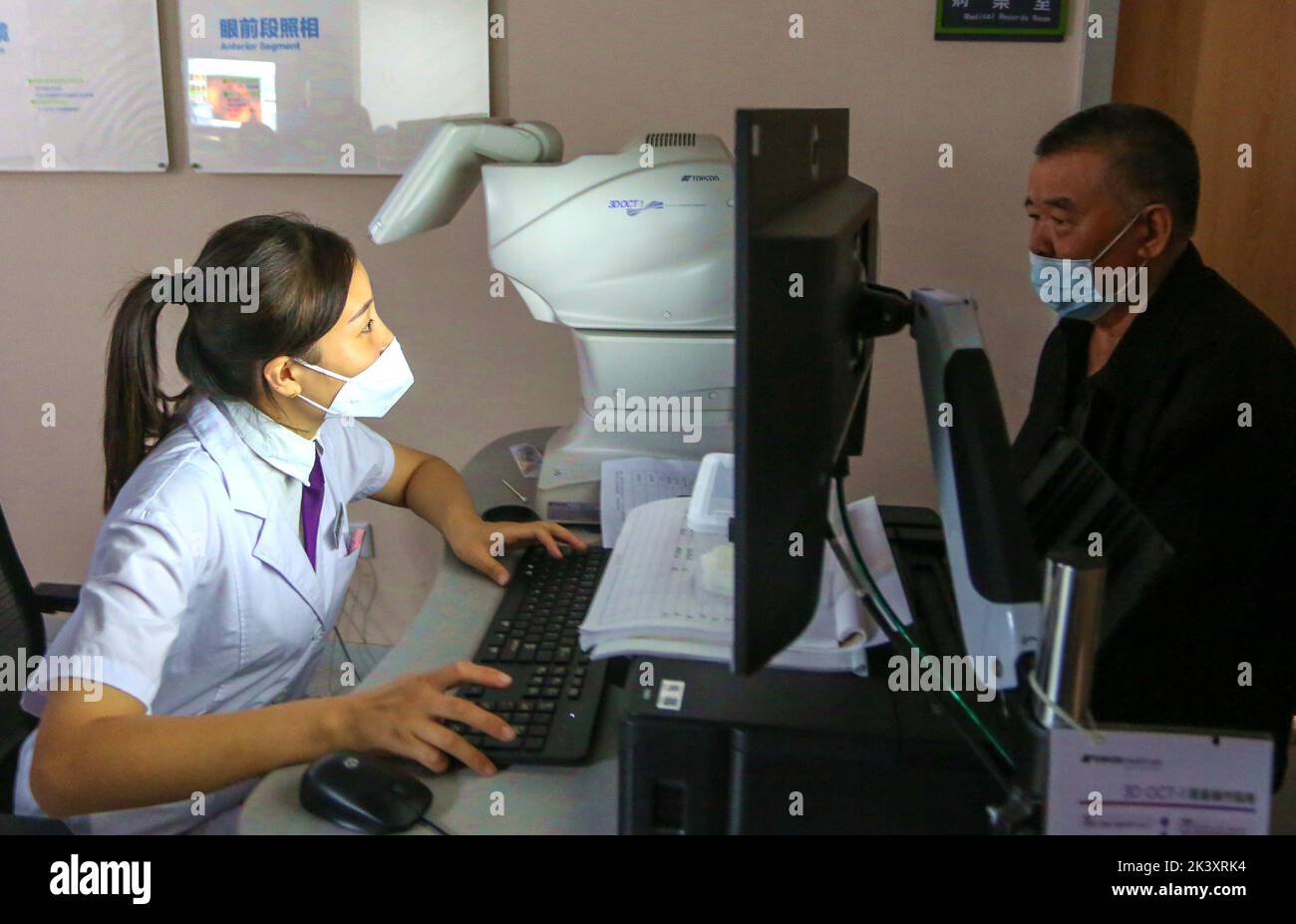 HANDAN, CHINA - 28. SEPTEMBER 2022 - Ein Arzt bietet eine kostenlose körperliche Untersuchung für Veteranenkader in Handan, Provinz Hebei, China, 28. September 2022. Stockfotohttps://www.alamy.de/image-license-details/?v=1https://www.alamy.de/handan-china-28-september-2022-ein-arzt-bietet-eine-kostenlose-korperliche-untersuchung-fur-veteranenkader-in-handan-provinz-hebei-china-28-september-2022-image484323592.html