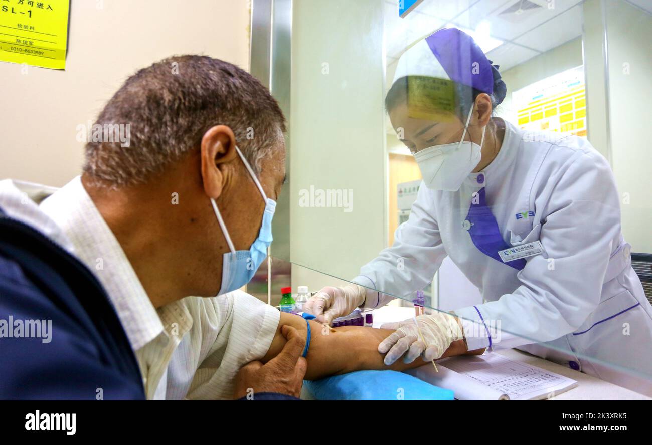 RM2K3XRK6–HANDAN, CHINA - 28. SEPTEMBER 2022 - Veteranenkader stehen für eine kostenlose körperliche Untersuchung in Handan, Provinz Hebei, China, am 28. September 2022 an.