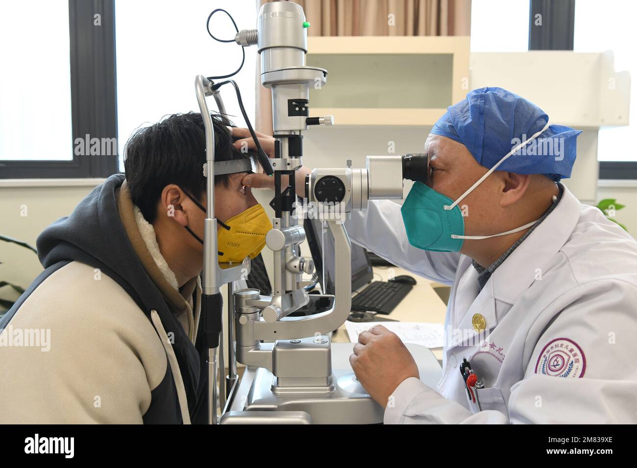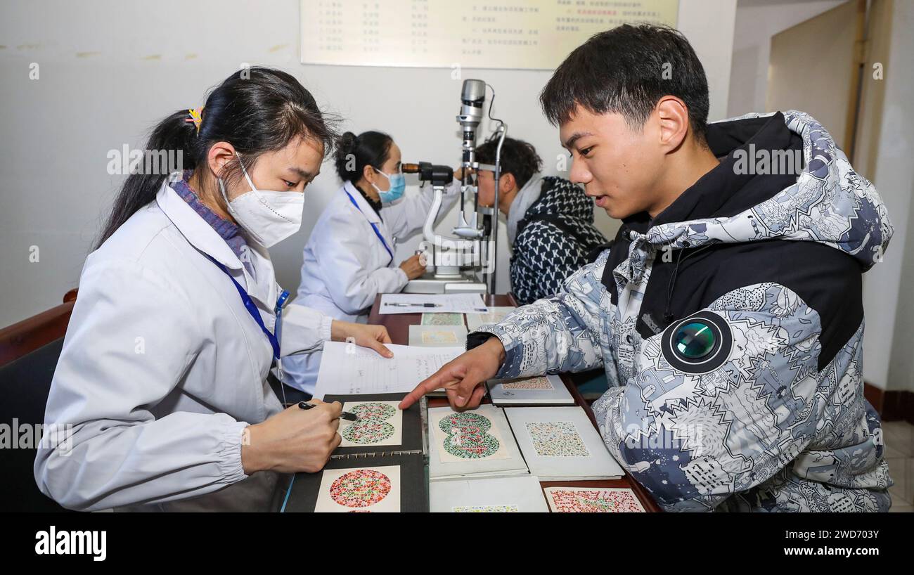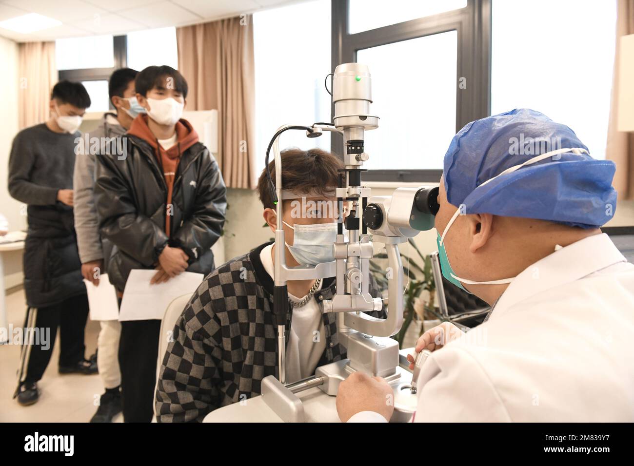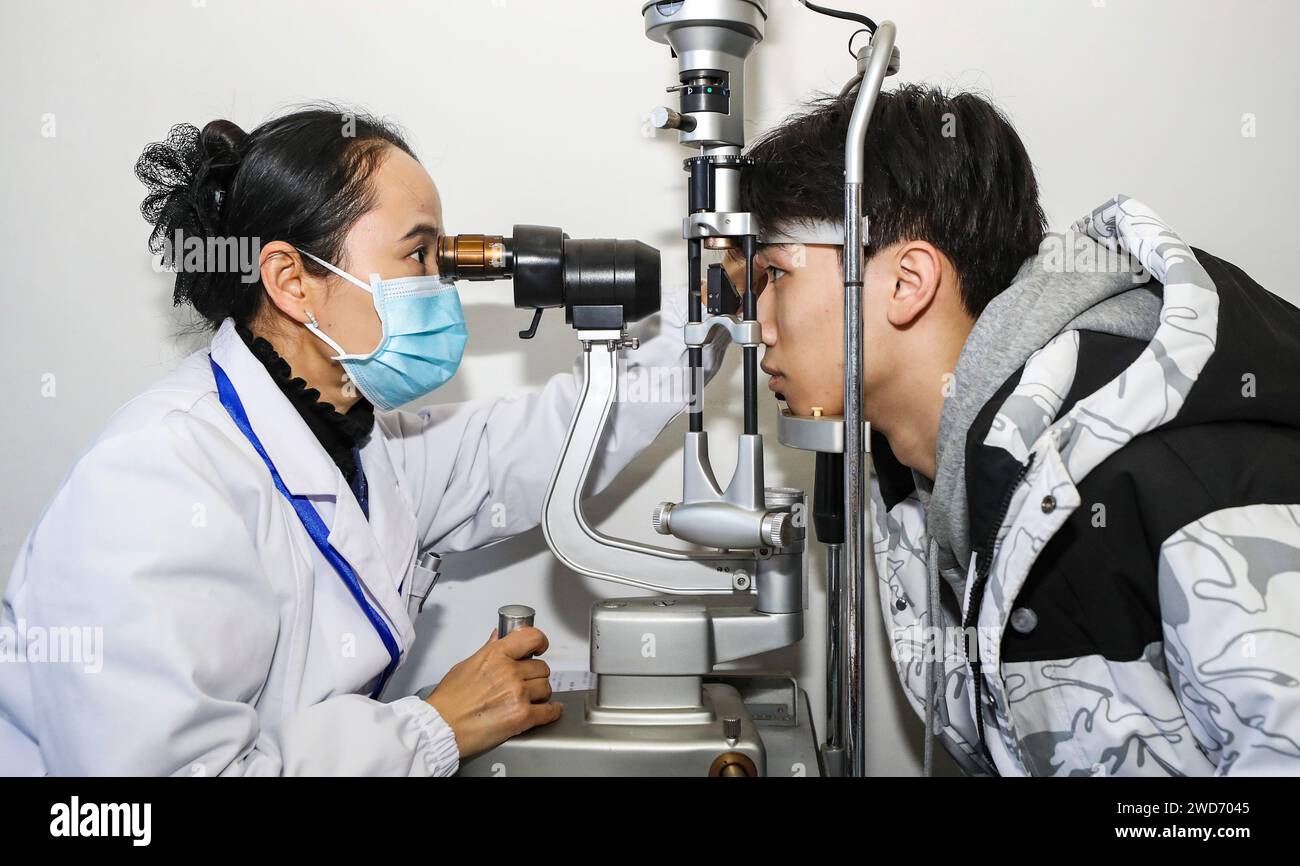 HUAI'AN, CHINA - 19. JANUAR 2024 - Ein Arzt untersucht die Augen eines jungen Antragstellers in der Stadt Huai'an, Provinz Jiangsu, China, 19. Januar 2024. Stockfotohttps://www.alamy.de/image-license-details/?v=1https://www.alamy.de/huaian-china-19-januar-2024-ein-arzt-untersucht-die-augen-eines-jungen-antragstellers-in-der-stadt-huaian-provinz-jiangsu-china-19-januar-2024-image593296821.html
