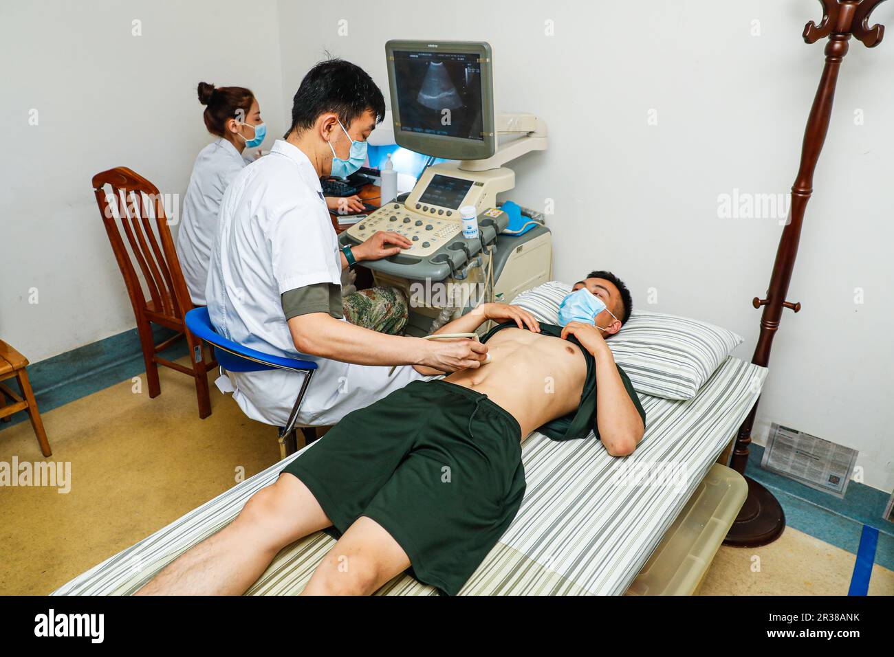 CHONGZUO, CHINA - 22. MAI 2023 - Ein Kandidat hat eine körperliche Untersuchung in einem Militärkrankenhaus in Chongzuo, dem südchinesischen Autonomo Guangxi Zhuang Stockfotohttps://www.alamy.de/image-license-details/?v=1https://www.alamy.de/chongzuo-china-22-mai-2023-ein-kandidat-hat-eine-korperliche-untersuchung-in-einem-militarkrankenhaus-in-chongzuo-dem-sudchinesischen-autonomo-guangxi-zhuang-image552759807.html