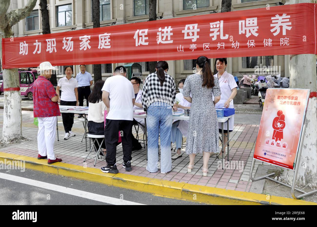 ZAOZHUANG, CHINA - 4. AUGUST 2023 - Medizinisches Personal führt Gesundheitsinformationsförderungsdienste wie körperliche Untersuchung und Stillen für PEO durch Stockfotohttps://www.alamy.de/image-license-details/?v=1https://www.alamy.de/zaozhuang-china-4-august-2023-medizinisches-personal-fuhrt-gesundheitsinformationsforderungsdienste-wie-korperliche-untersuchung-und-stillen-fur-peo-durch-image560357867.html