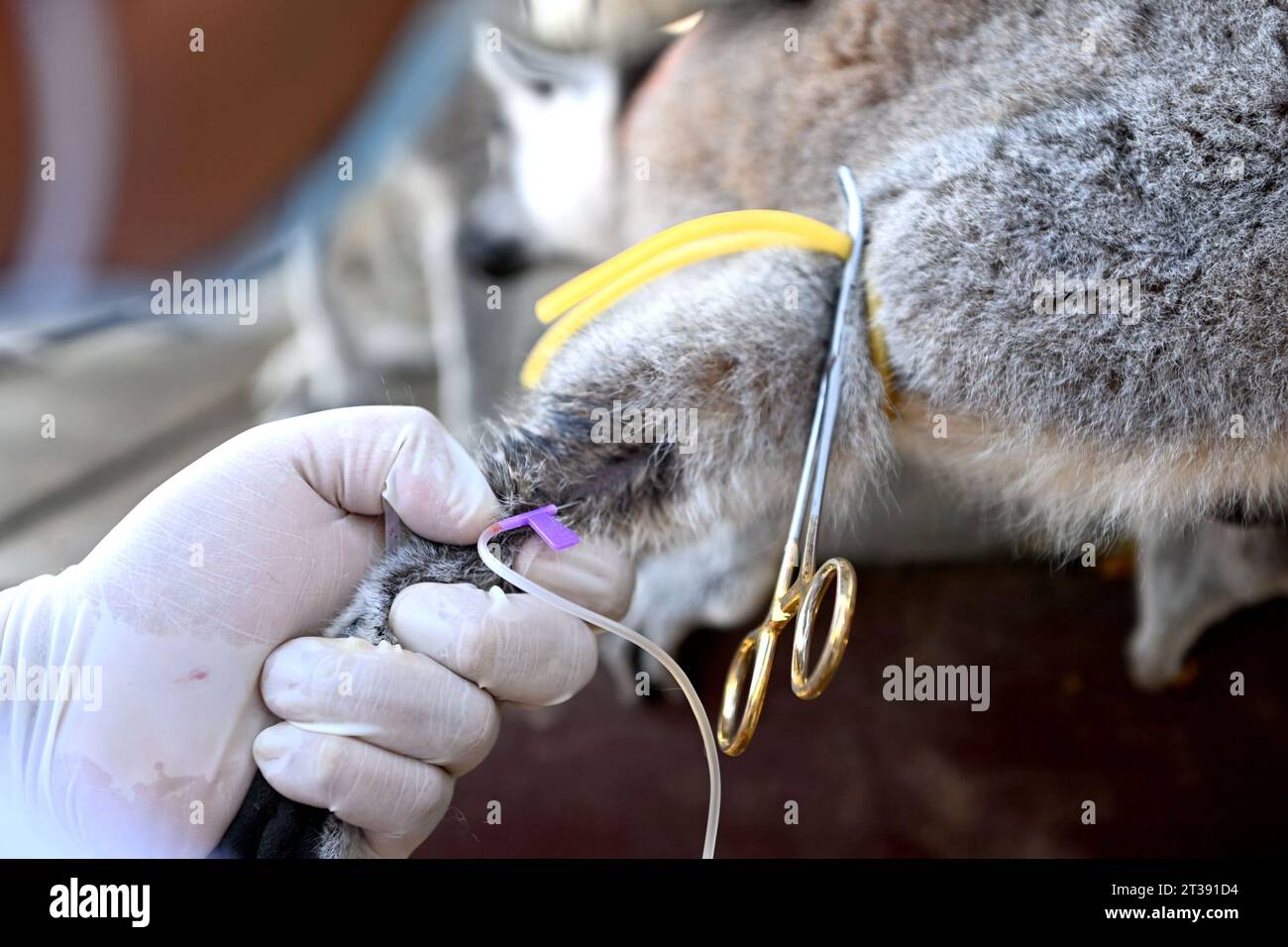 QINGDAO, CHINA - 24. OKTOBER 2023 - Ein Labortechniker überprüft die Blutproben von Wildtieren in der Forest and Wildlife World in Qingdao, Osten Stockfotohttps://www.alamy.de/image-license-details/?v=1https://www.alamy.de/qingdao-china-24-oktober-2023-ein-labortechniker-uberpruft-die-blutproben-von-wildtieren-in-der-forest-and-wildlife-world-in-qingdao-osten-image569984844.html