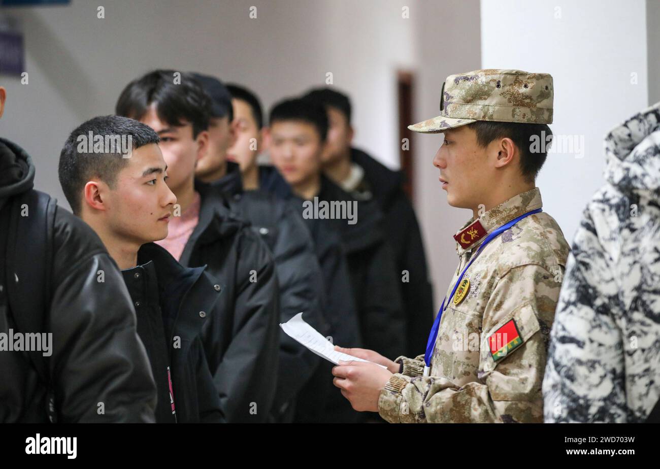 HUAI'AN, CHINA - 19. JANUAR 2024 - Ein Kader überprüft die Informationen junger Bewerber in der Stadt Huai'an, Provinz Jiangsu, China, 19. Januar 2024. Stockfotohttps://www.alamy.de/image-license-details/?v=1https://www.alamy.de/huaian-china-19-januar-2024-ein-kader-uberpruft-die-informationen-junger-bewerber-in-der-stadt-huaian-provinz-jiangsu-china-19-januar-2024-image593296813.html