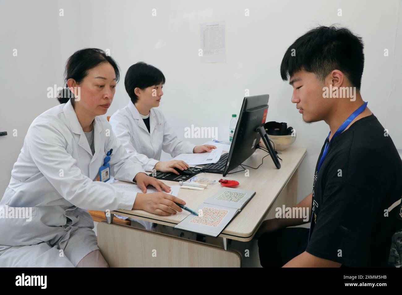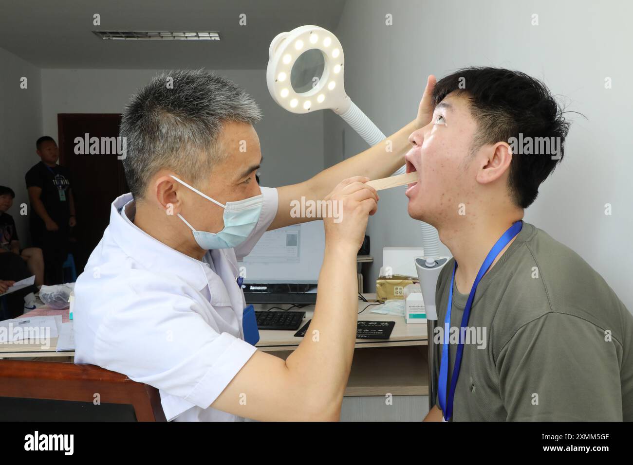 RM2XMM5HC–YANCHENG, CHINA - 29. JULI 2024 - Junge Wehrpflichtige nehmen an einer körperlichen Untersuchung in einer Wehrpflichtstation in Funing County, Yanch, Teil