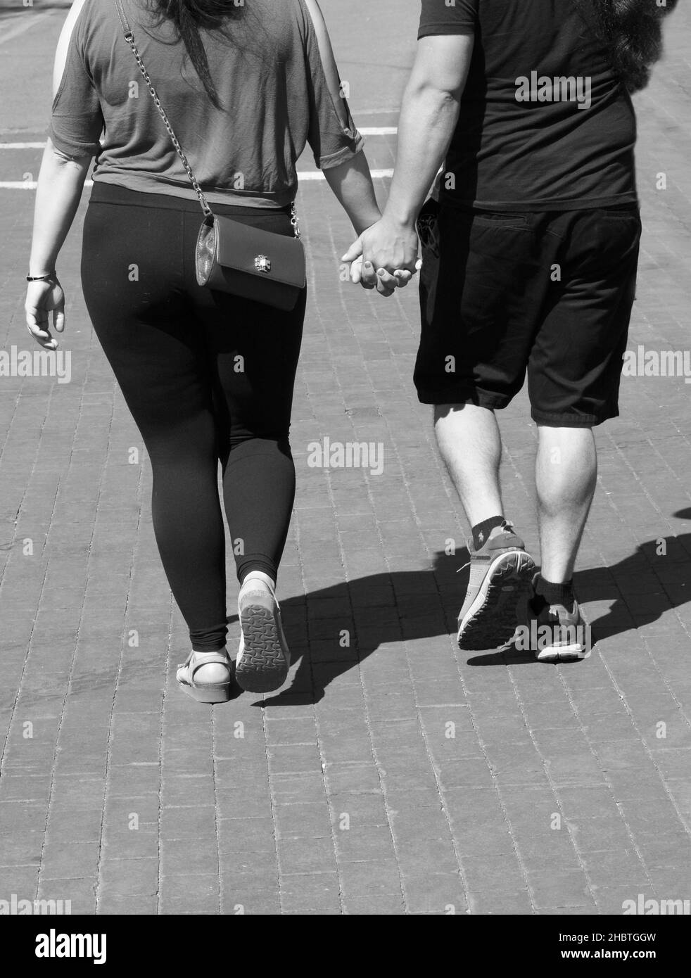 RF2HBTGGJ–Ein Paar hält hjnds, als sie in Santa Fe, New Mexico, spazieren gehen.