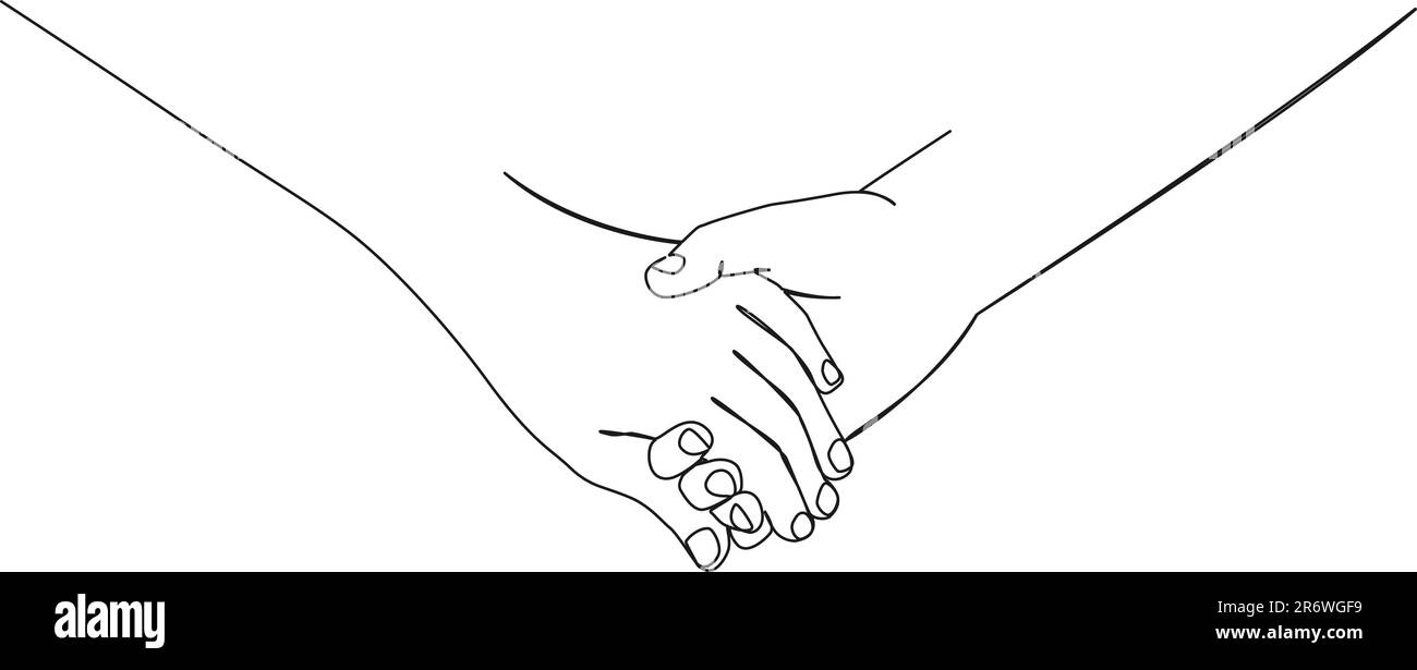 RF2R6WGF9–Kontinuierliche einzeilige Nahaufnahme von Paaren, die sich an den Händen halten, Strichgrafiken-Vektordarstellung
