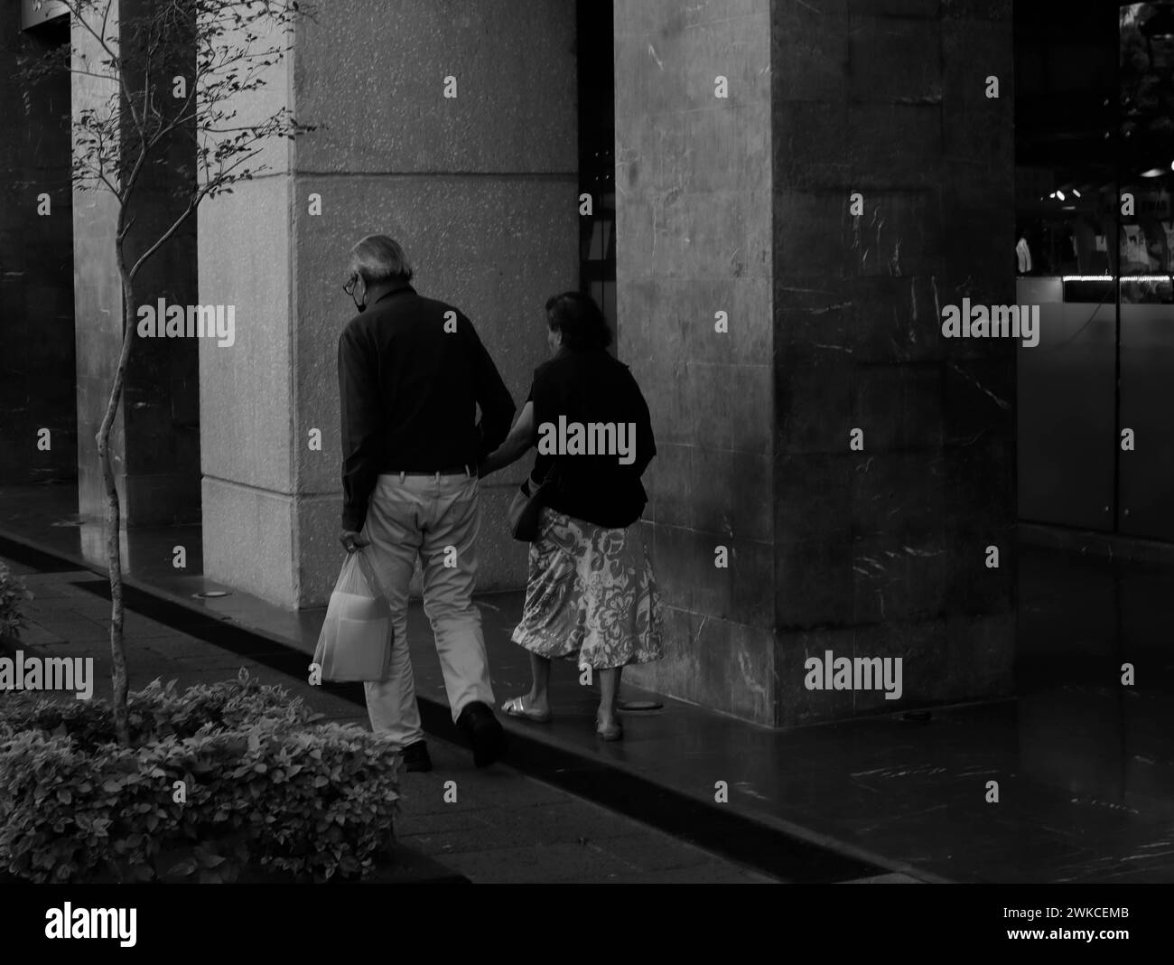 Altes Paar, das zusammen den Bürgersteig runtergeht. Stockfotohttps://www.alamy.de/image-license-details/?v=1https://www.alamy.de/altes-paar-das-zusammen-den-burgersteig-runtergeht-image597105947.html