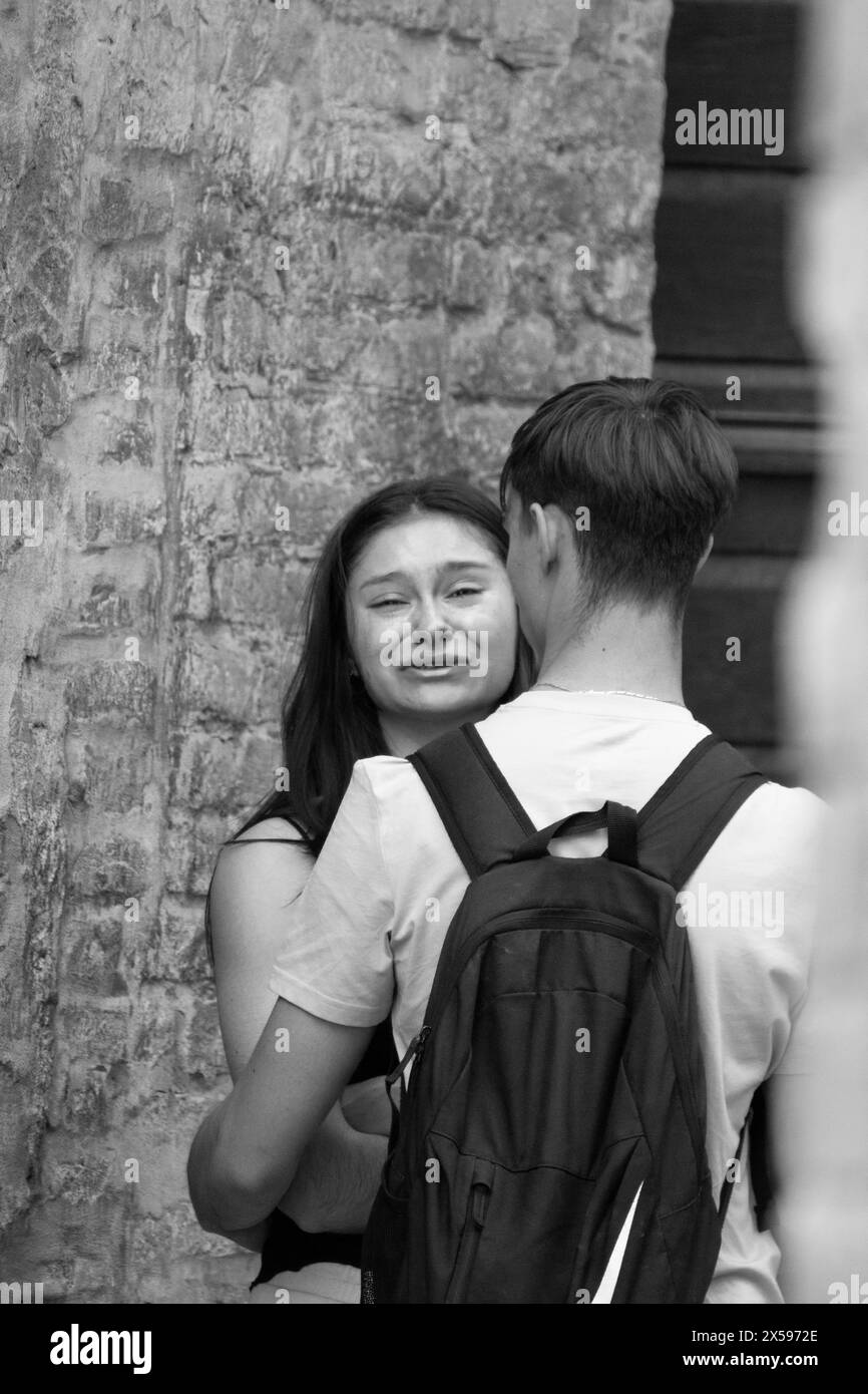 Die urbane Landschaft zeigt eine weinende Frau, die von einem unterstützenden Freund getröstet wird Stockfotohttps://www.alamy.de/image-license-details/?v=1https://www.alamy.de/die-urbane-landschaft-zeigt-eine-weinende-frau-die-von-einem-unterstutzenden-freund-getrostet-wird-image605639286.html