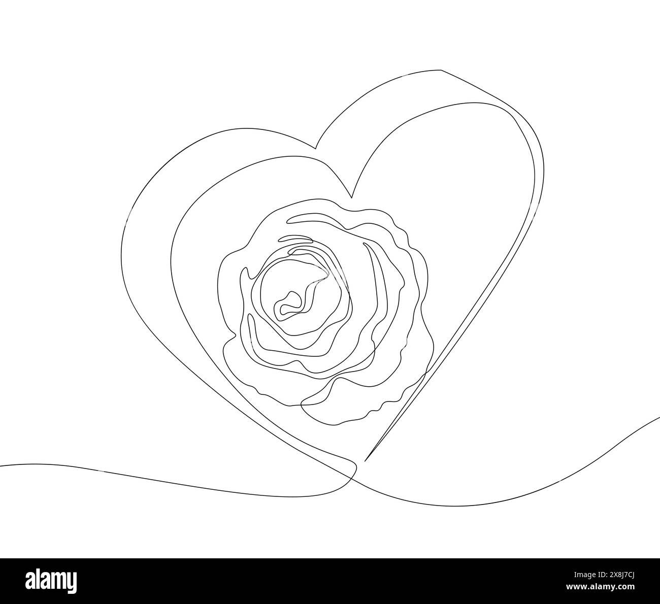 RF2X8J7CJ–Eine durchgehende Herzlinie mit Rosenblüten. Dünne Linie Illustration Liebe Vektor Konzept. Konturzeichnung kreative Ideen.