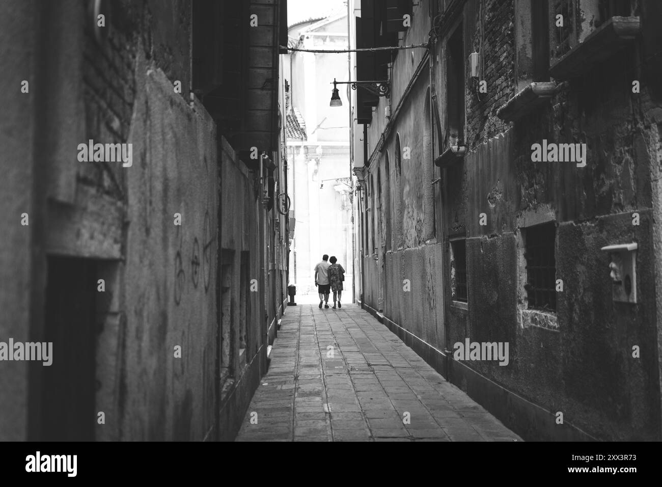 RF2Y9A2CT–Elegantes Paar, das sich auf einer City Street in Monochrom umgibt.