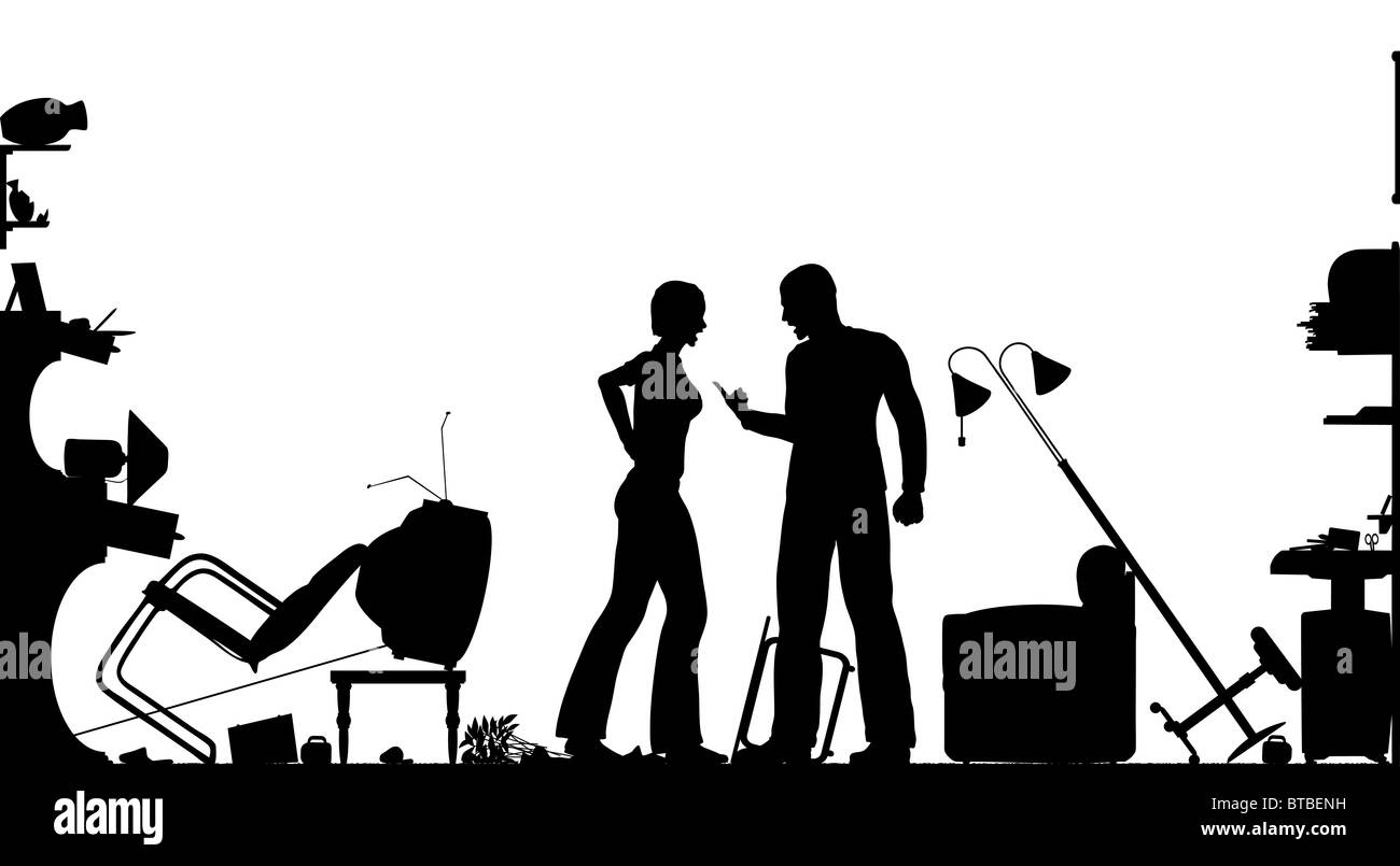 RFBTBENH–Illustrierte Silhouette ein paar argumentieren in ihrem Wohnzimmer