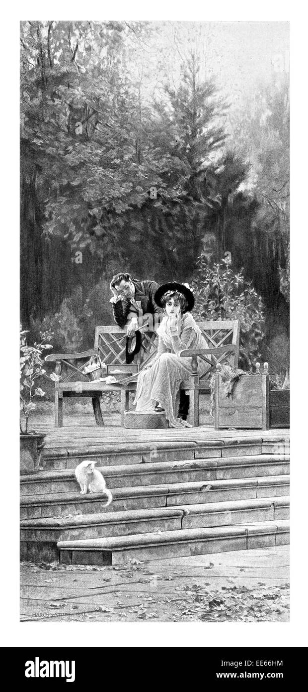Eine vorherige Anlage Marcus Stone Botanischer Garten Park Bank paar Beziehung Katze viktorianischen Kostümen verkleiden gent Stockfotohttps://www.alamy.de/image-license-details/?v=1https://www.alamy.de/stockfoto-eine-vorherige-anlage-marcus-stone-botanischer-garten-park-bank-paar-beziehung-katze-viktorianischen-kostumen-verkleiden-gent-77583568.html