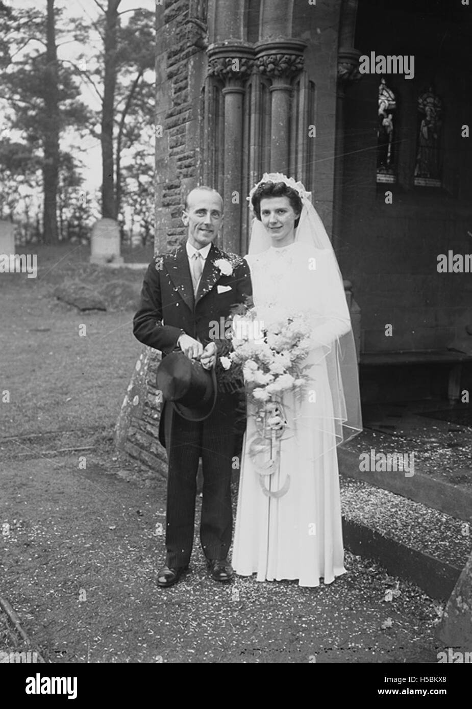 RMH5BKX8–Ein Foto oder eine Darstellung eines Brautpaares, das seine Ehe feiert, aufgenommen in einer formellen oder informellen Umgebung.