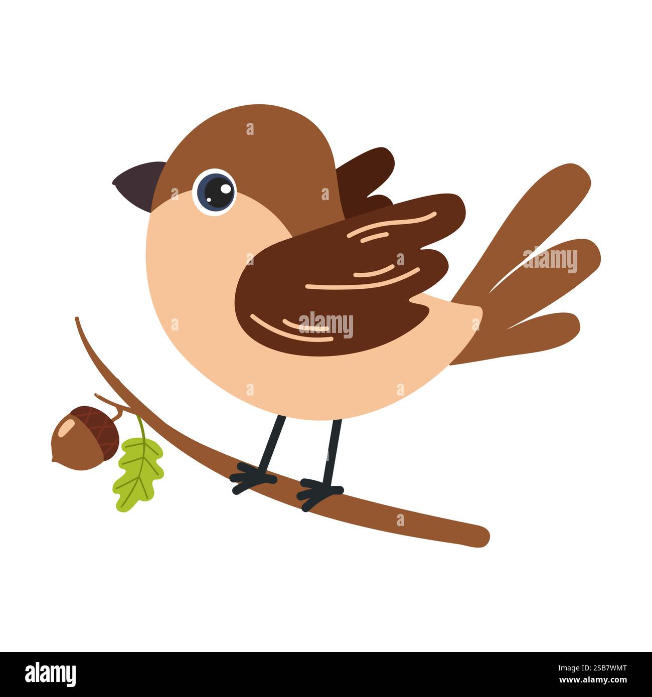 Niedlicher brauner Vogel, der an einem sonnigen Tag auf einem Ast mit einer Eichel und einem Blatt sitzt Stock Vektorhttps://www.alamy.de/image-license-details/?v=1https://www.alamy.de/niedlicher-brauner-vogel-der-an-einem-sonnigen-tag-auf-einem-ast-mit-einer-eichel-und-einem-blatt-sitzt-image643718680.html