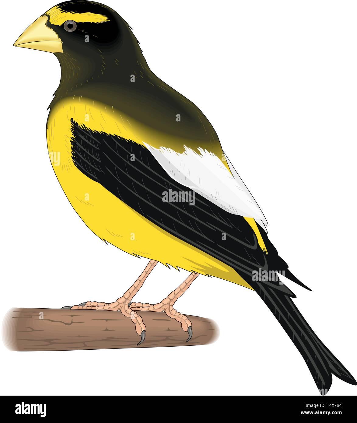 Abend Grosbeak auf einer Stange Vector Illustration Stock Vektorhttps://www.alamy.de/image-license-details/?v=1https://www.alamy.de/abend-grosbeak-auf-einer-stange-vector-illustration-image243980328.html