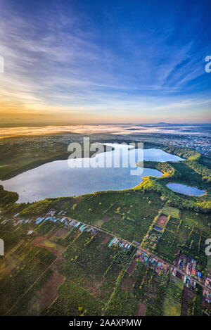 Hochauflösende Luftaufnahme von einem Gletscher mit blauem Gletschereis. Bossons Gletscher, Mont Blanc Massiv der Alpen, Chamonix, Haute-Savoie, Frankreich.