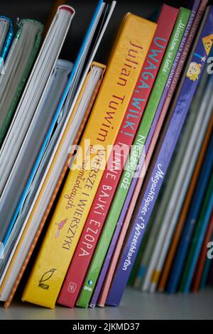 Polnische Kinder lernen 1945 in einem Hanauer Flüchtlingslager in Deutschland lesen, unter der Aufsicht von UNRRA-Mitarbeitern und einem Priester, der Auschwitz überlebte und ein polnisches Alphabet namens Elementarz hielt.