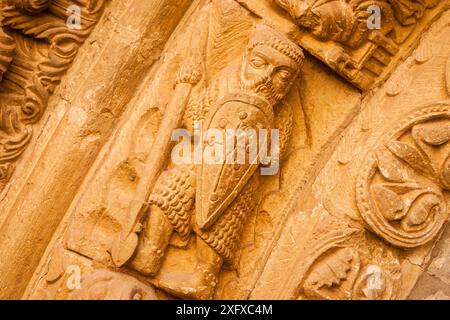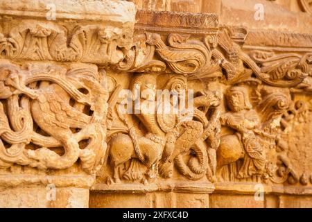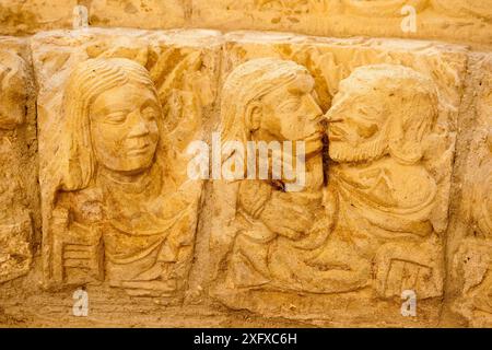 Romanische Reliefs im Kloster Santa Maria la Real, IX. Jahrhundert. Piasca. Picos de Europa. Kantabrien. Spanien