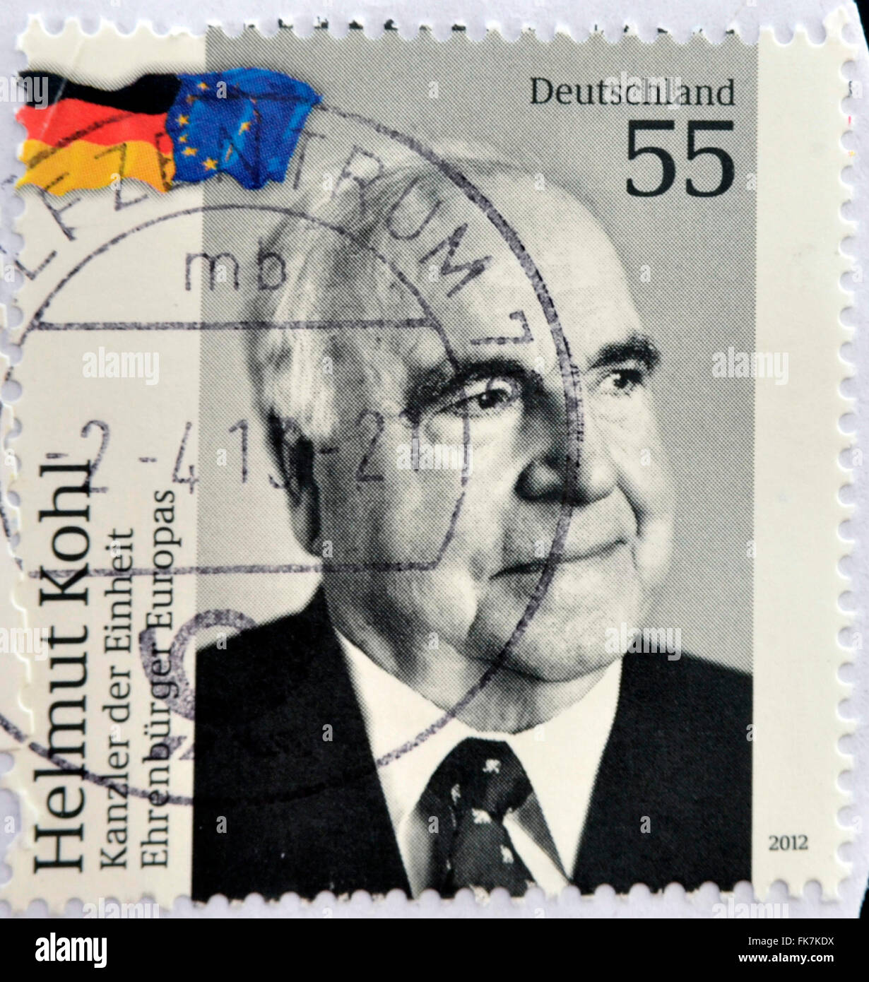 Deutschland - ca. 2012: Eine Briefmarke gedruckt in Deutschland zeigt Helmut Kohl - Kanzler der Einheit, ca. 2012