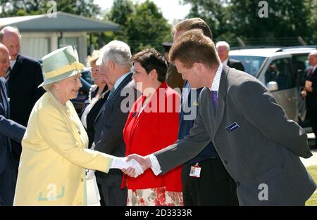 Königin Elizabeth II. Mit Clark MacFarlane (rechts), Managing Director der Wind Power Division bei Siemens, während ihres Besuchs in der Siemens Gamesa Renewable Energy Windturbinenschaufelfabrik in Hull, bei einem Besuch in der Stadt anlässlich ihres Jahres als britische Kulturstadt.